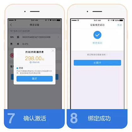 7、首次刷卡298元,支付银盛通代理服务费,确认激活。激活后240天内,刷卡满88万系统返还200元,满138万系统再返98元、累积返还298元。
