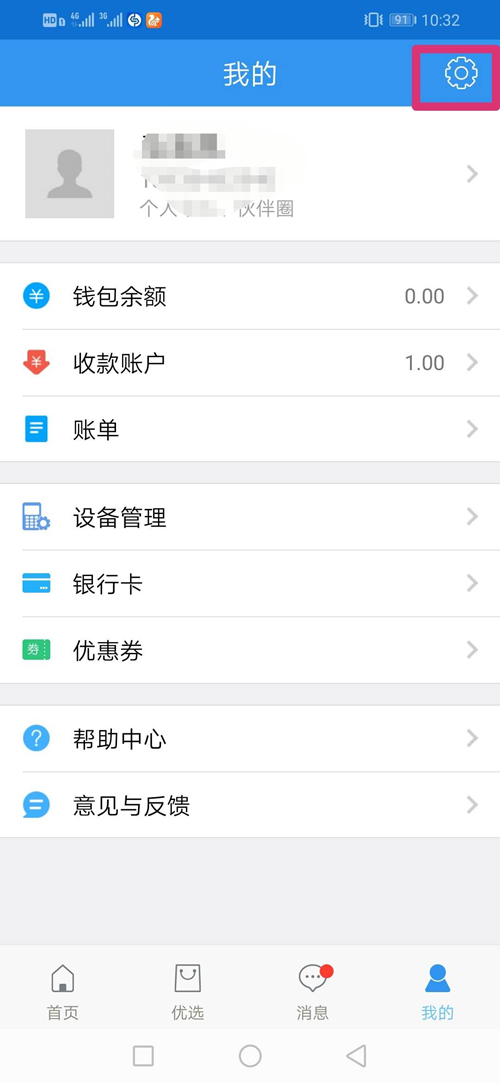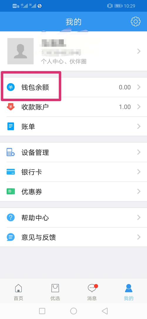 第一步:打开银盛通APP,进入我的,点钱包余额,查看余额